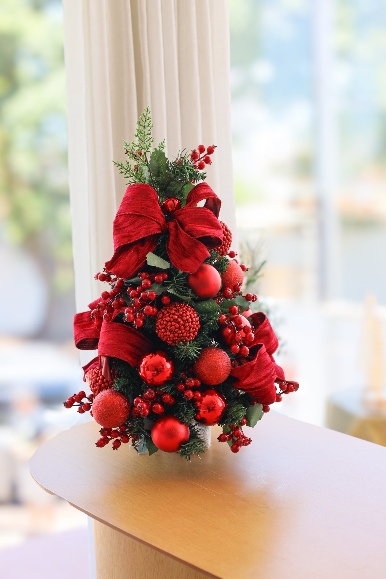 Seu arranjo compacto e equilibrado traz profundidade e destaque para aparadores, mesas laterais, buffets ou centros de mesa — perfeita para quem busca um toque sofisticado sem abrir mão do charme tradicional do Natal.