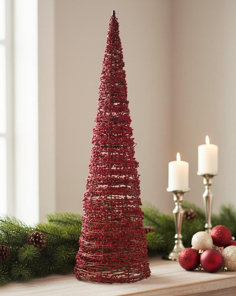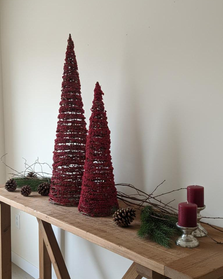 A Dupla de Árvores Natalinas Cone Berry traz o charme rústico e elegante do Natal natural para dentro da sua casa. Com estrutura em formato cônico e revestimento de pequenas frutas vermelhas decorativas, essas peças criam uma atmosfera acolhedora e sofisticada, perfeita para compor aparadores, mesas e cantinhos especiais.