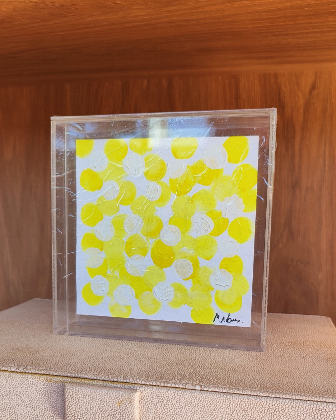 Quadro Acrílico Aquarela Bolinhas Amarelas - 15x15cm