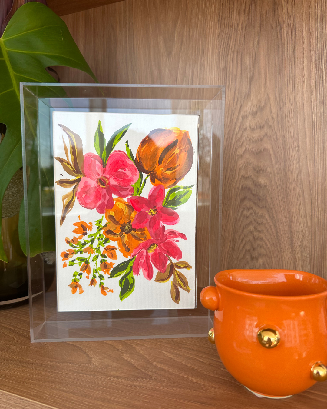 A moldura em acrílico transparente realça as cores vibrantes da aquarela e confere um toque moderno, permitindo que a arte se integre harmoniosamente à decoração. Ideal para compor salas, escritórios, quartos ou espaços que pedem um detalhe artístico e elegante.