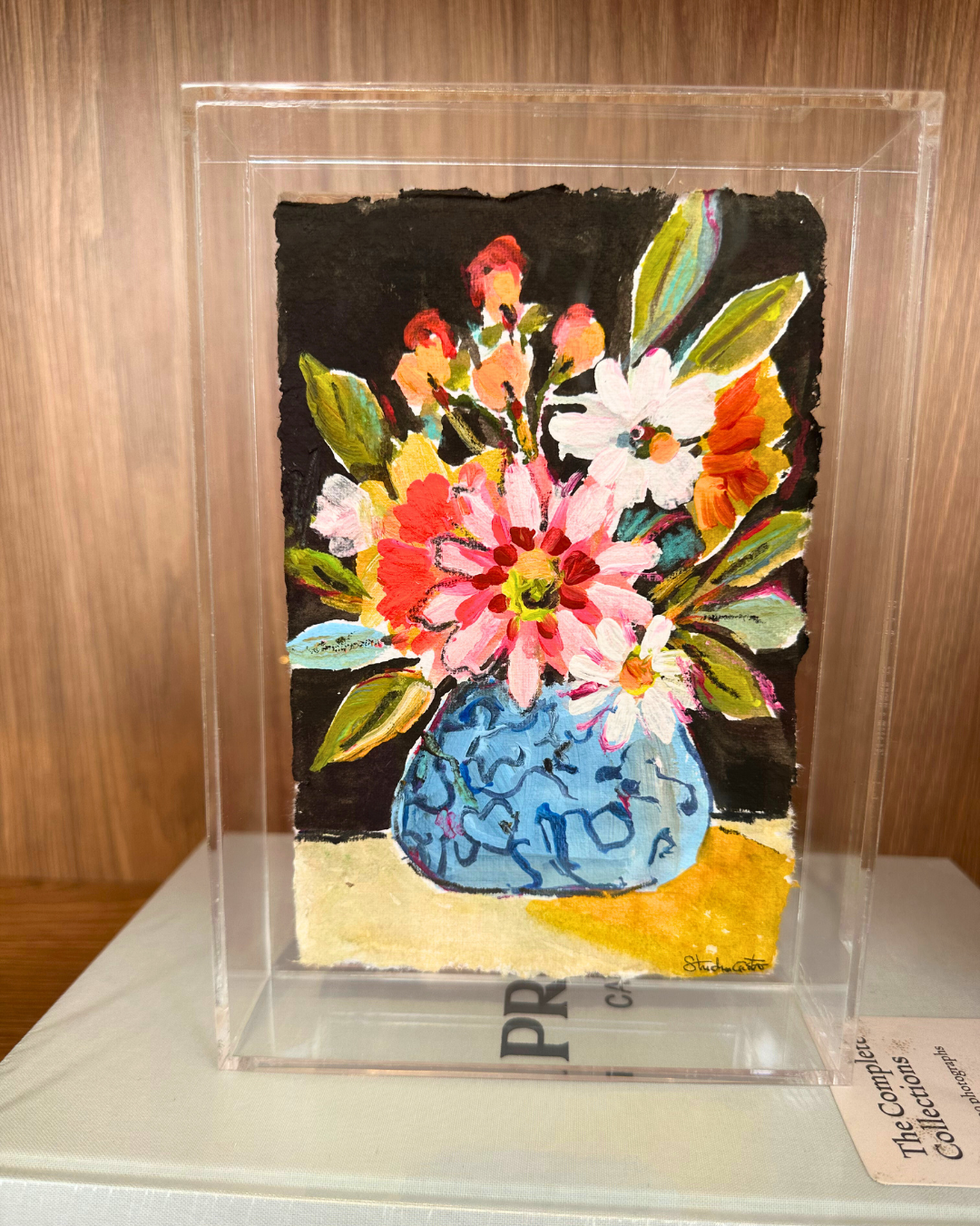 Com flores delicadamente pintadas à mão, cada peça é única e carrega sutis variações que tornam o seu quadro exclusivo.