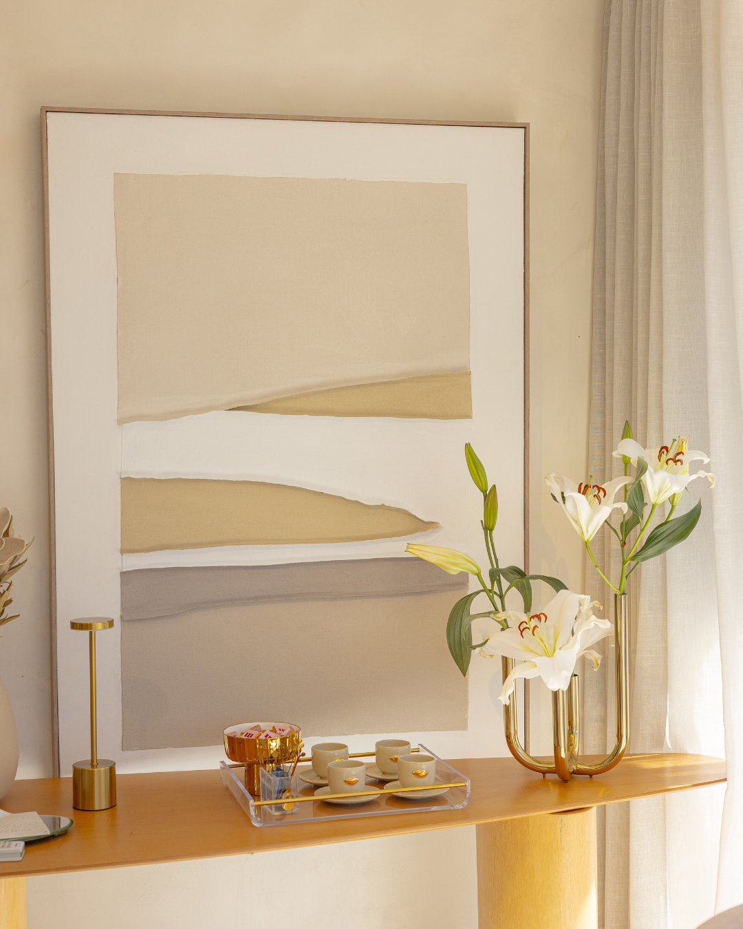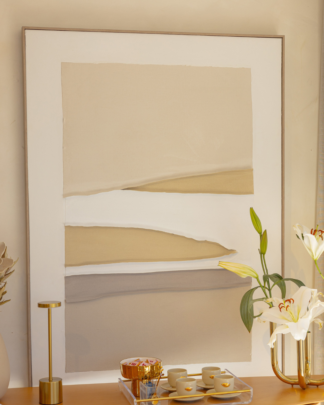 Com formas orgânicas que remetem às curvas suaves das dunas, este quadro une elegância e naturalidade em uma peça de grande impacto visual. A composição em tons neutros transmite leveza e serenidade, criando um ambiente sofisticado e atemporal.