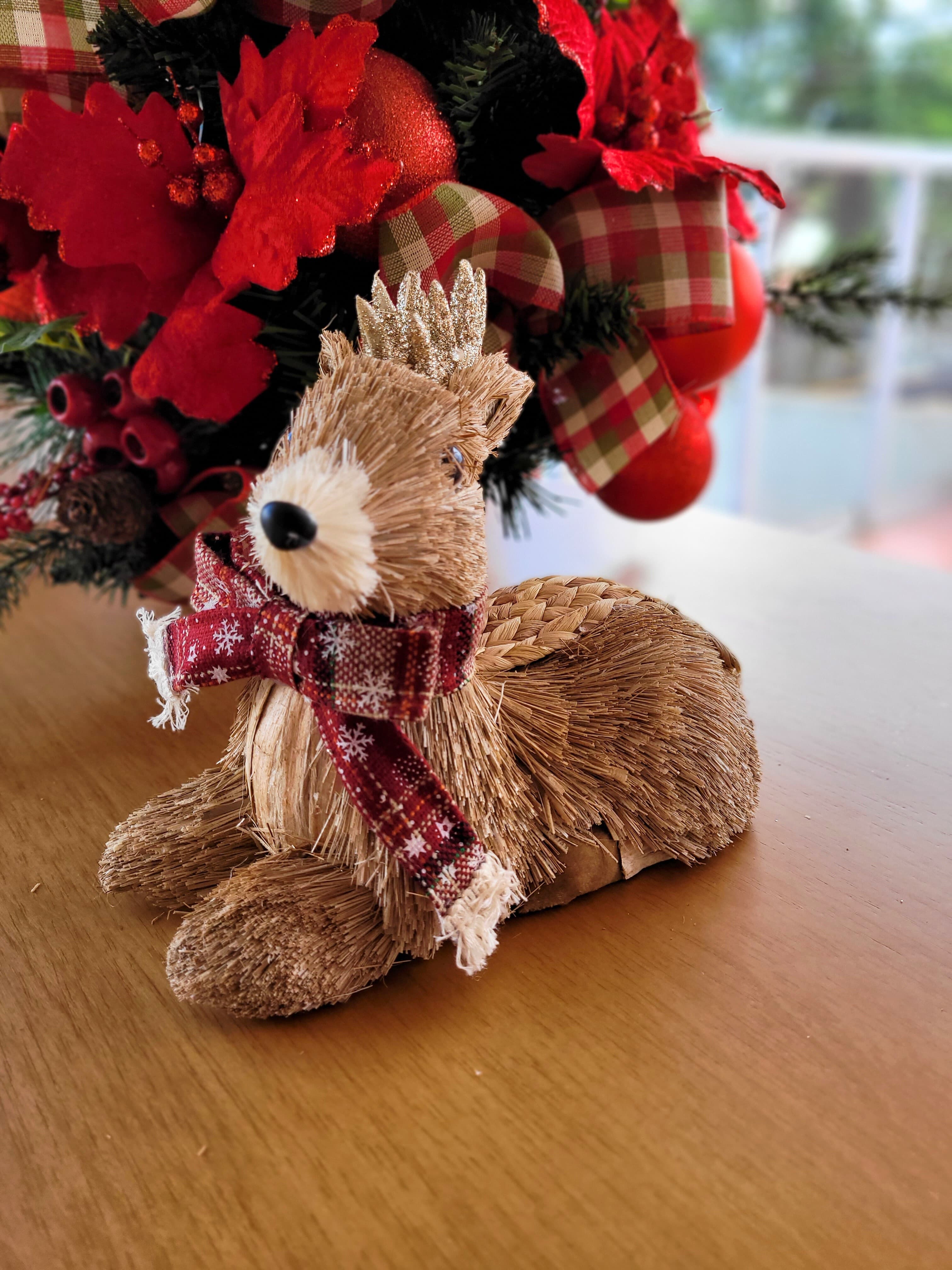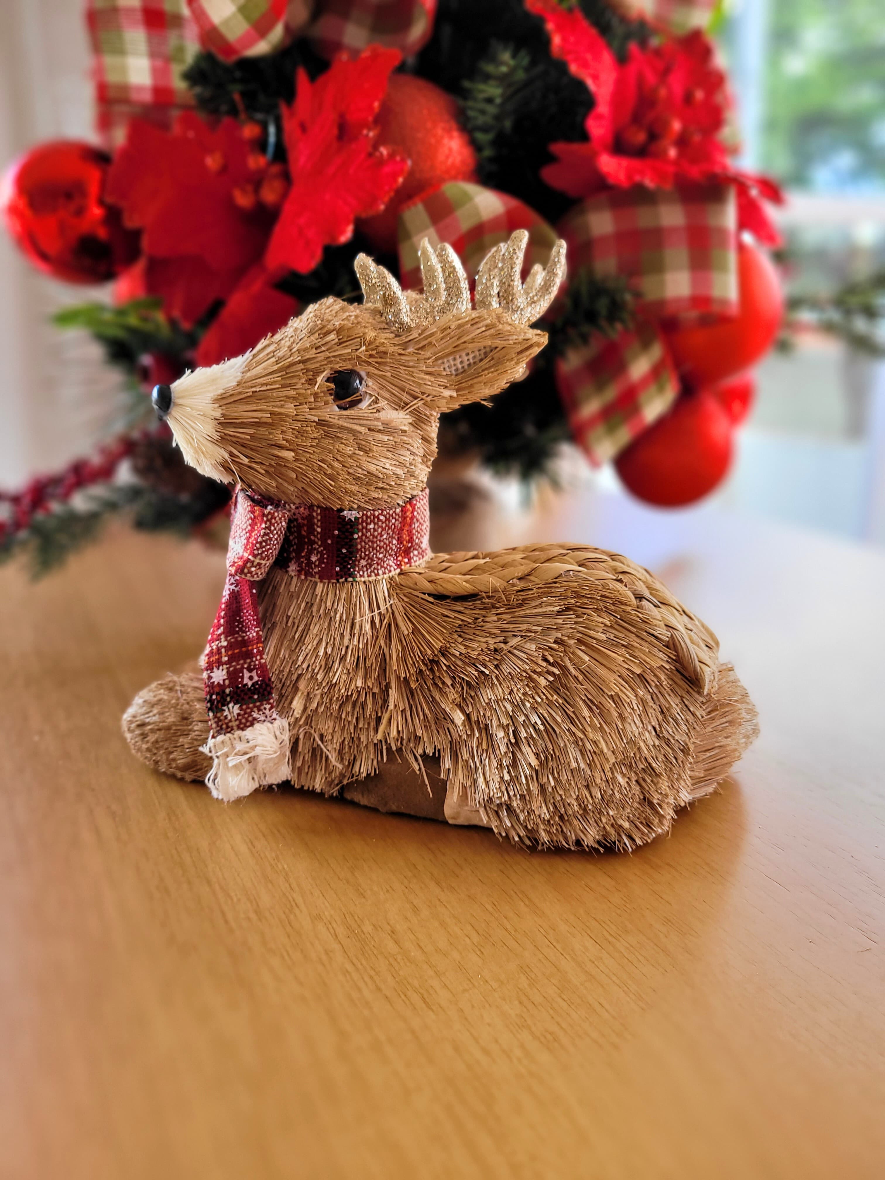 Essa rena sentada é o detalhe perfeito para compor um ambiente aconchegante e cheio de estilo durante o Natal.
