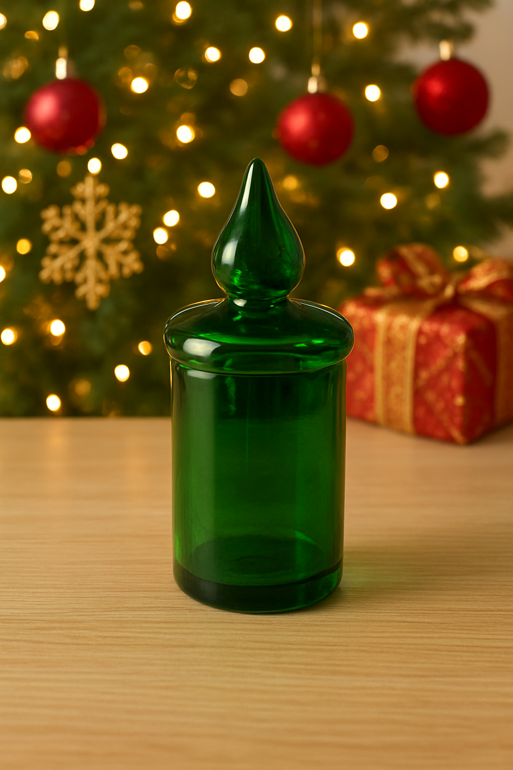 A vela decorativa de vidro verde com tampa é uma peça que une charme clássico ao brilho aconchegante da chama amarelada. Com design refinado e acabamento translúcido, ela cria um efeito luminoso acolhedor, perfeito para compor ambientes festivos ou dar um toque especial em qualquer ocasião.