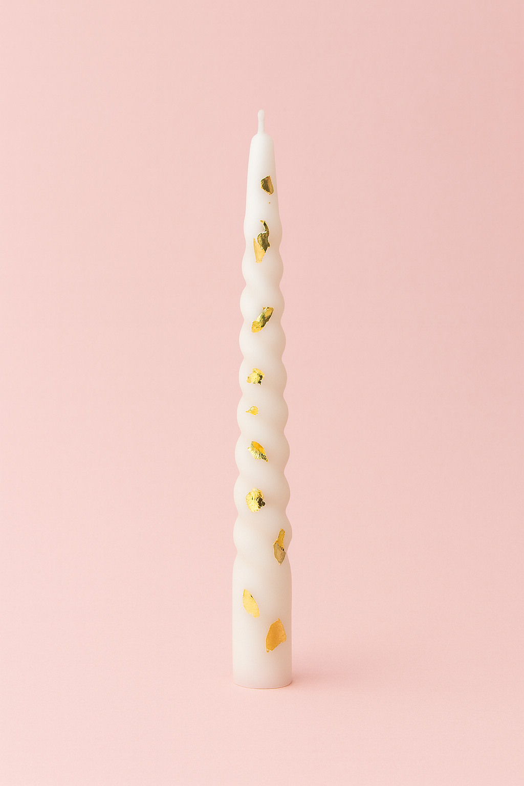 Vela Espiral Branca com Detalhes Dourados - 20cm
