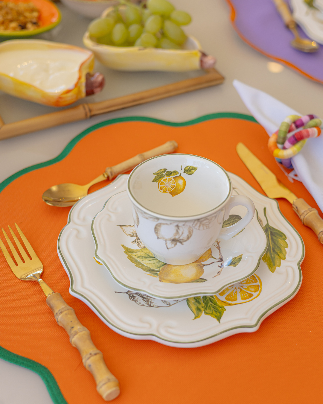 Xícara com Pires Branca da Coleção Toscana - Desenhos de Limão Siciliano
