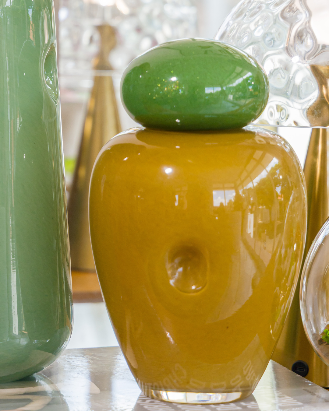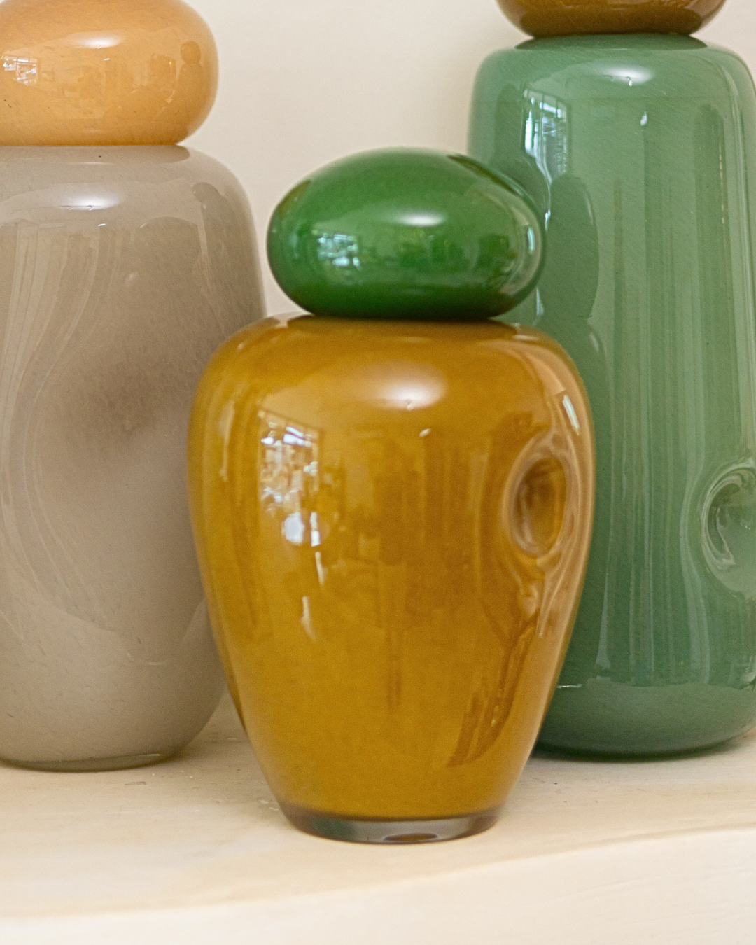 Vaso de Vidro Latch Ocre com Tampa Verde - 15x25 cm