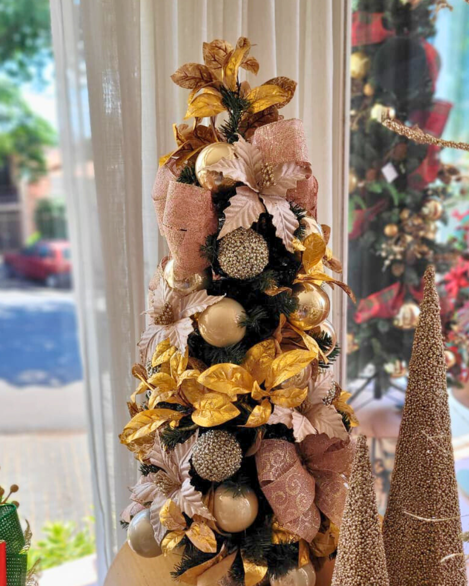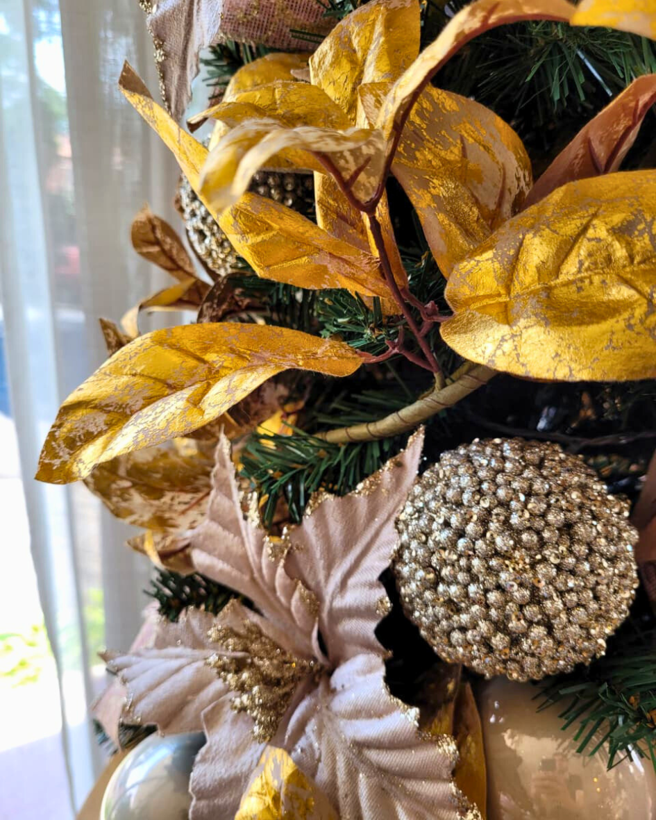 Celebre o Natal com o encanto e a sofisticação da Árvore de Natal Champagne Glam, uma peça que traduz a beleza e a leveza das festas de fim de ano.