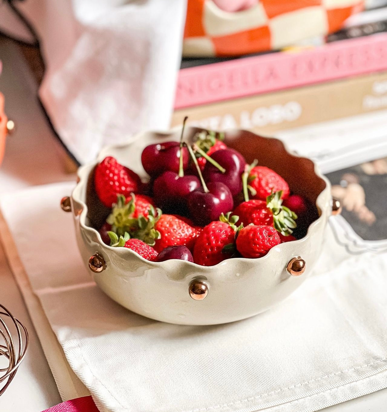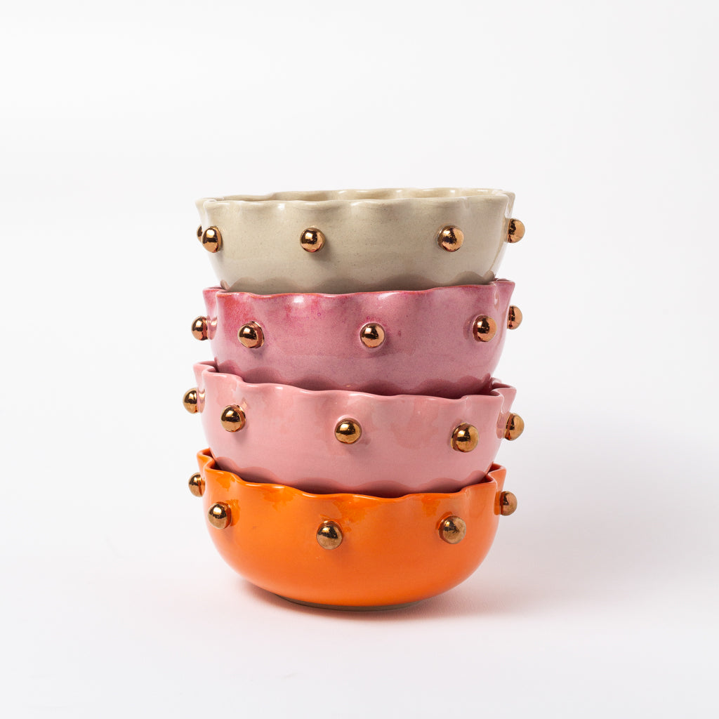 Descrição: Cada bowl é cuidadosamente confeccionado em cerâmica queimada em alta temperatura, garantindo durabilidade e resistência. O destaque fica por conta dos detalhes delicados de bolinhas em ouro, que adicionam um toque de luxo e elegância.
