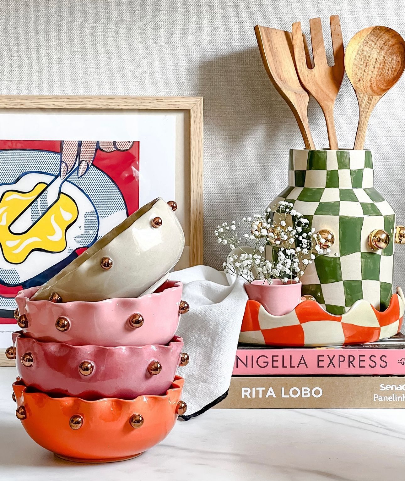 Características Artesanais: Como cada peça é desenvolvida artesanalmente, pequenas variações de tamanho e cor podem ocorrer, conferindo exclusividade a cada bowl. Manchinhas no esmalte são esperadas, resultando da autenticidade do processo artesanal.
