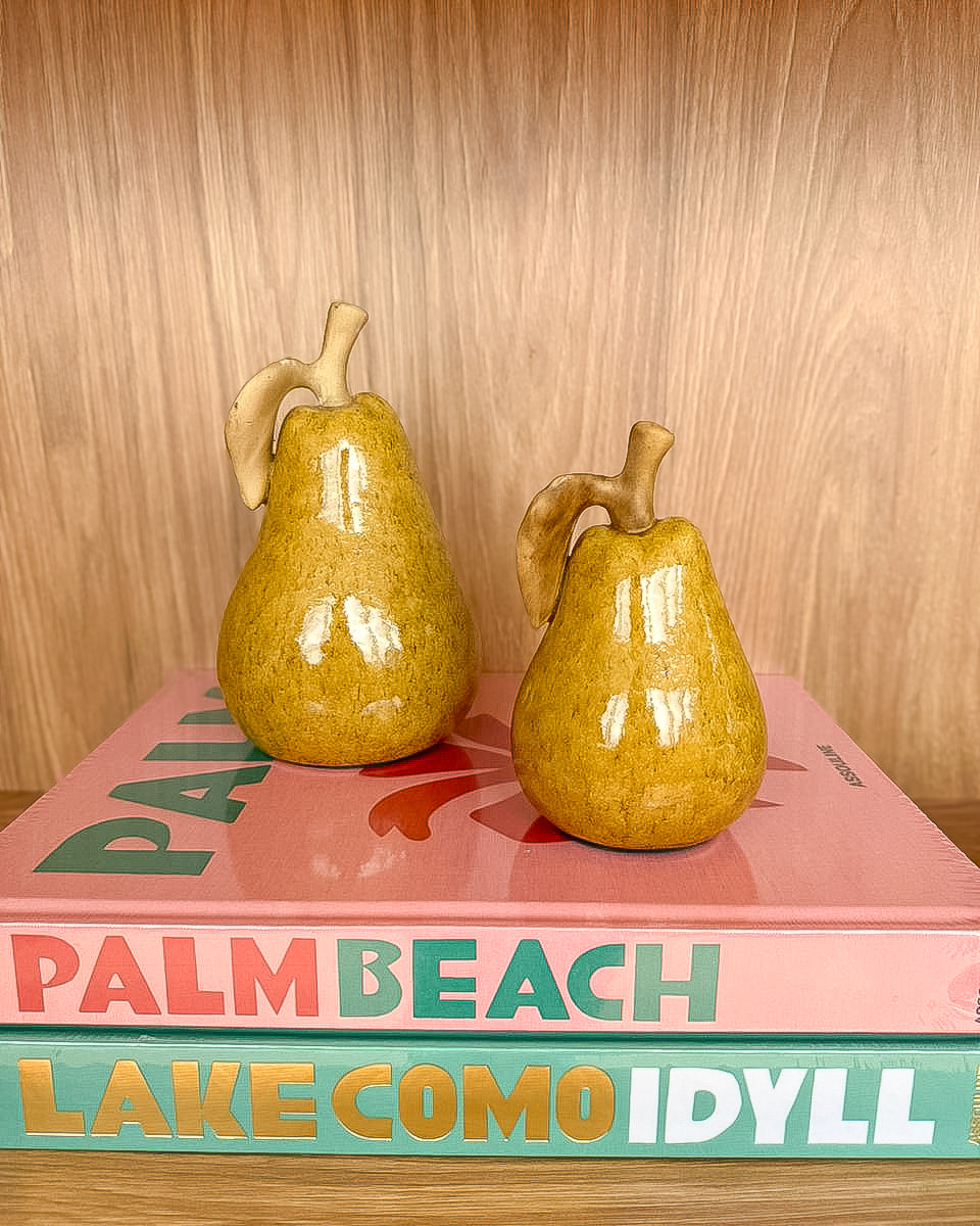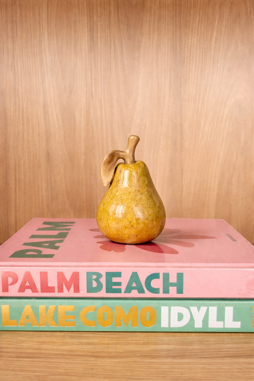 Escultura Pera Outonal em Cerâmica Esmaltada Bege Escuro – M