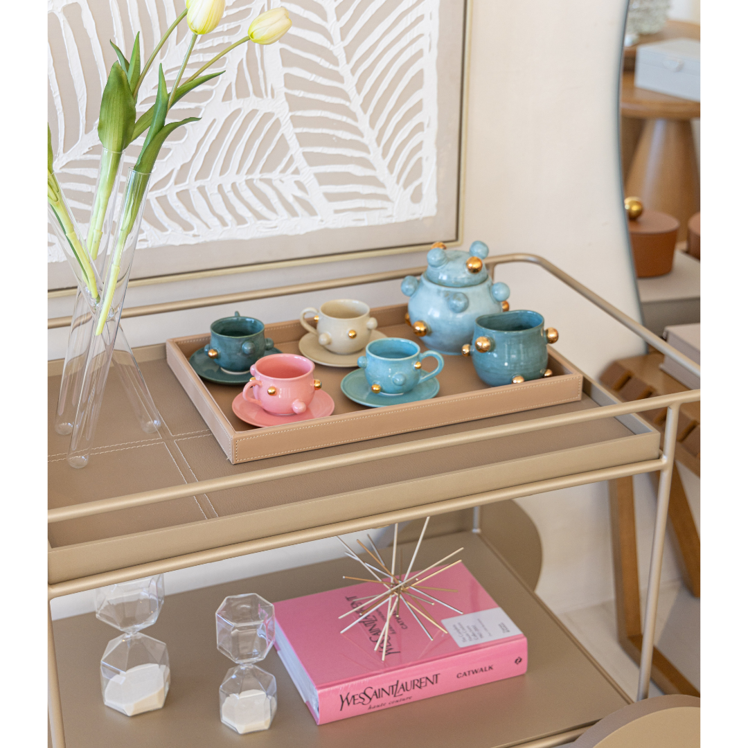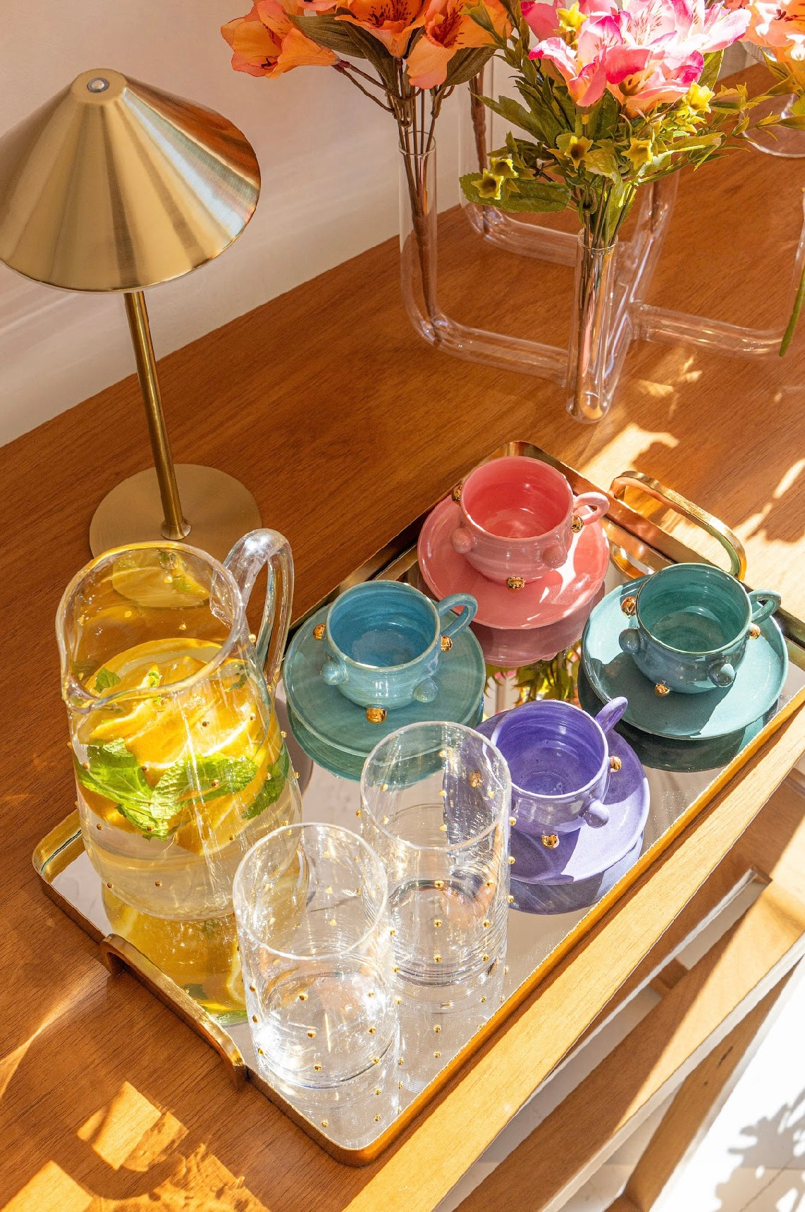 Luxo nos Detalhes: Os delicados detalhes em ouro realçam a beleza da peça, proporcionando um brilho suave que eleva instantaneamente qualquer momento, seja no café da manhã ou reunião.